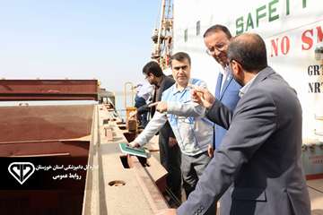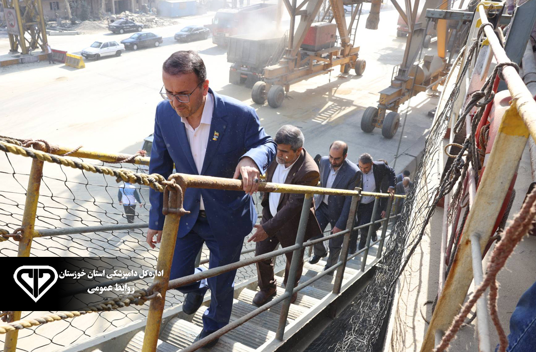 بازدید معاون وزیر و رئیس سازمان دامپزشکی کشور از انبارها و کشتی‌های حامل نهاده‌های دامی در بندر امام خمینی (ره) به روایت تصویر